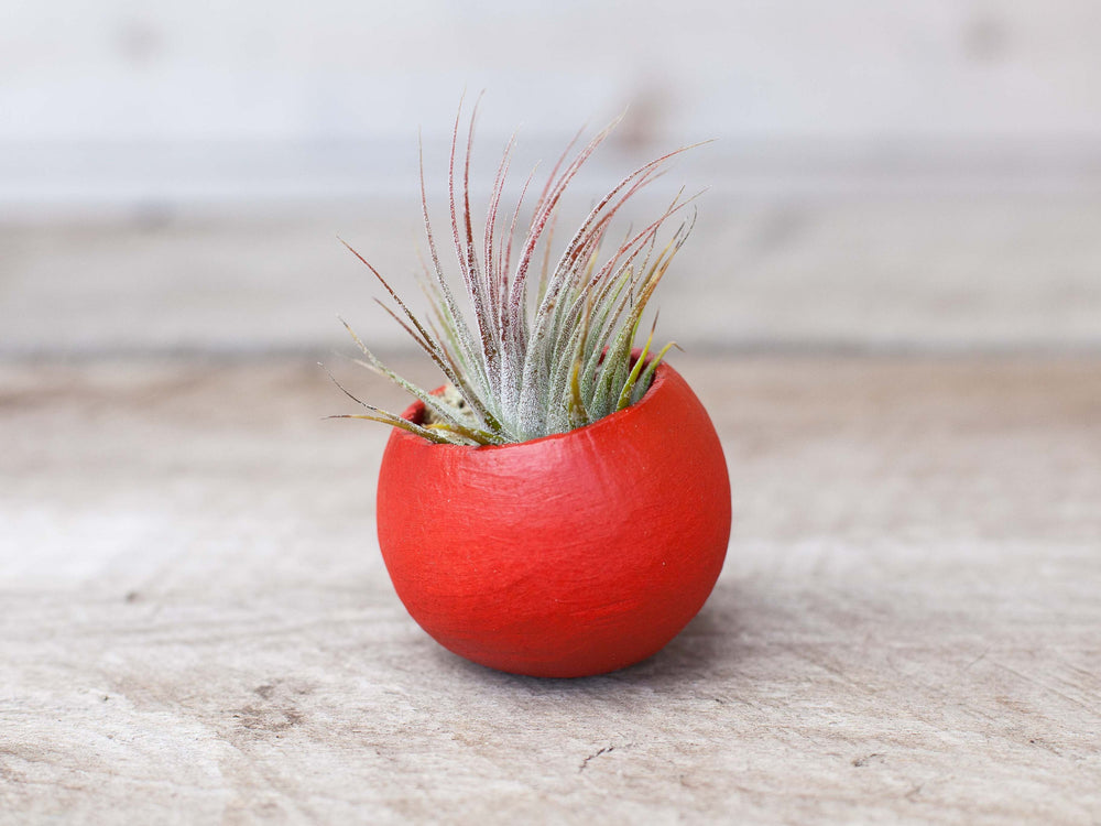 Add a bit of nature to your space with this stylish red air plant pod. We've hand-painted natural wood seed pods with a bright red to create the perfect air plant display. You customize your look by choosing your choice of colored moss.